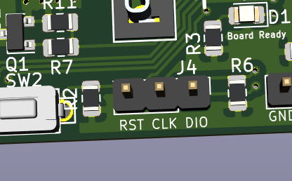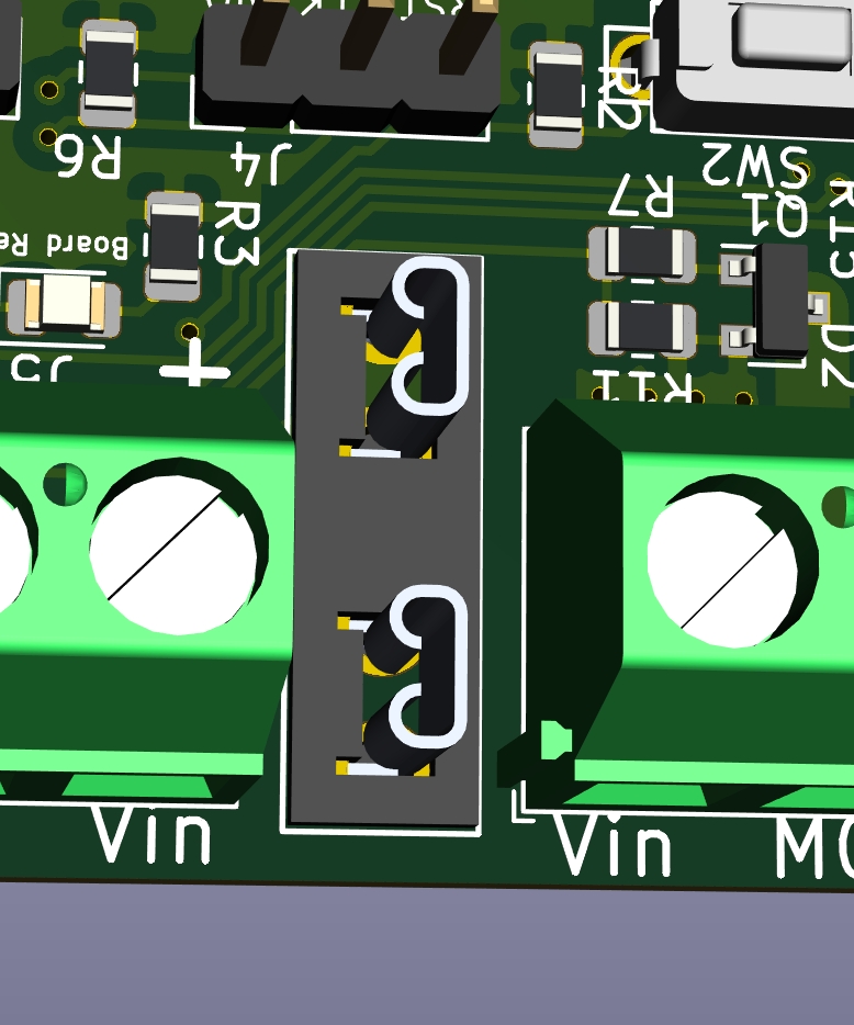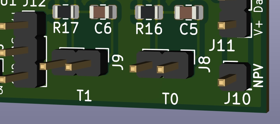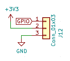 Header for using neopixels. There is a single power input pin (NPV) that you can supply with the voltage your strip needs (5V/12V) and it passes it to the three pin header (Vin, Data, Ground) Connected to J1, which has a NPV supplied voltage, GND and PB1