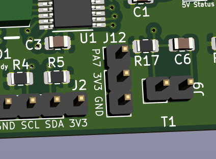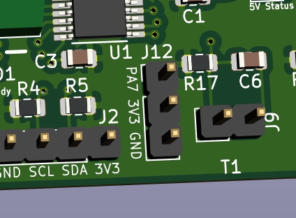 The GPIO header J12 (PA7,3V3,GND) is available for creative uses.