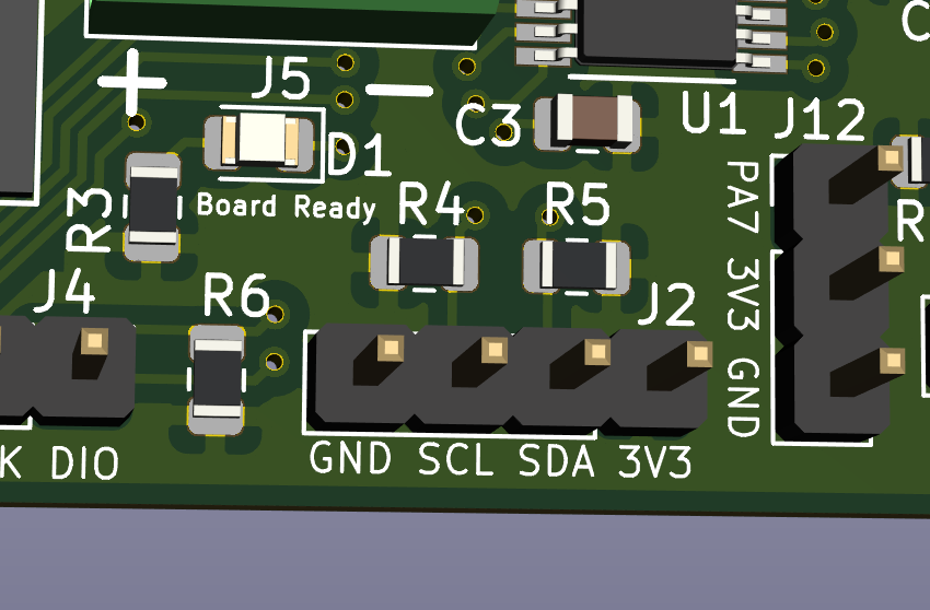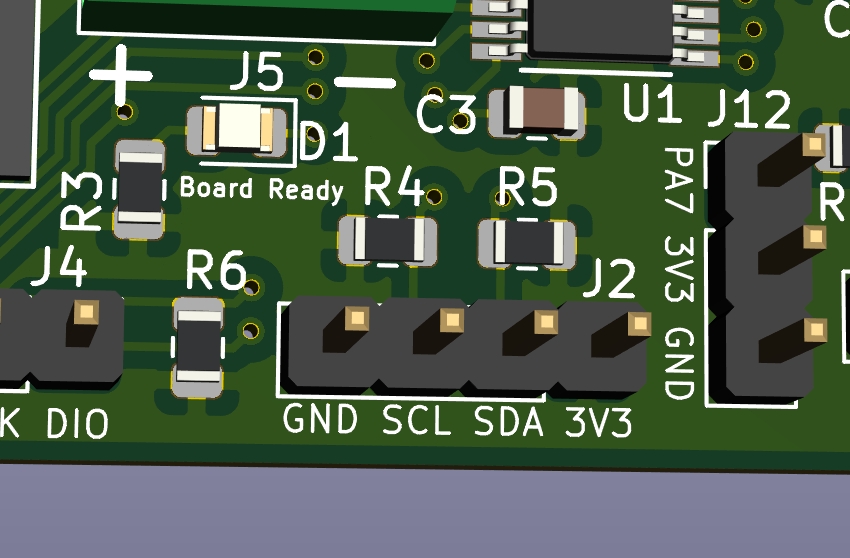 Contains a 3.3V I2C bus for connecting displays, and other sensors such as enviromental sensors and breakout expanders. This plugs into J2