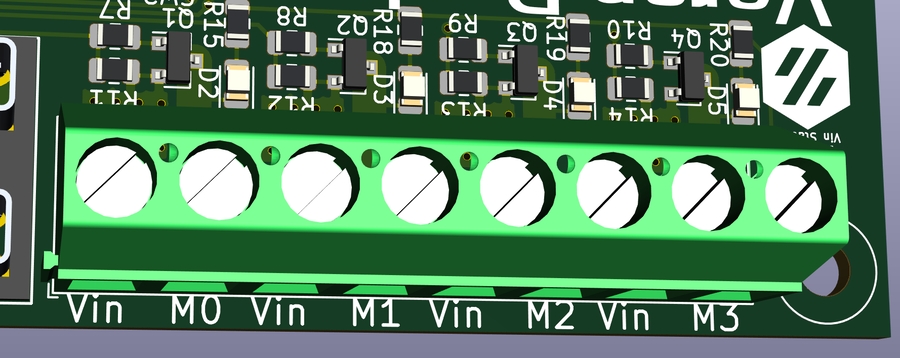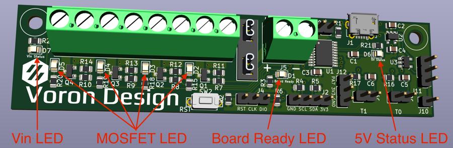 D7)4 indicator LEDs (D2-D5) near each of the MOSFETs and screw terminals, these indicate if the MOSFET is enabled