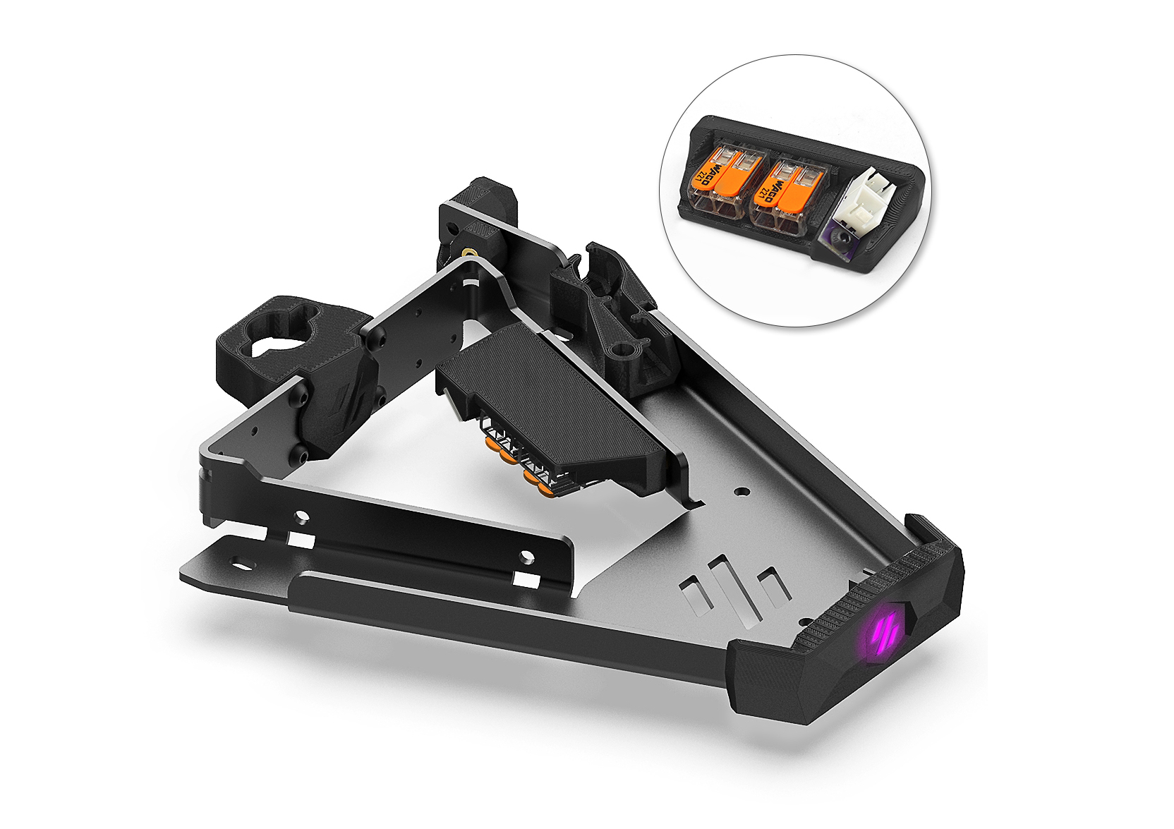 A laser cut and bent single piece bed concept, trying to implement a lightweight and stiff bed with full access to the mounting screws.
