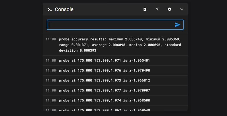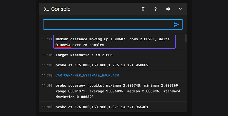 2. Send `PROBE_ACCURACY` to test the accuracy. Cartographer will automatically perform 10 measurements and provide a summary of the results.for example：