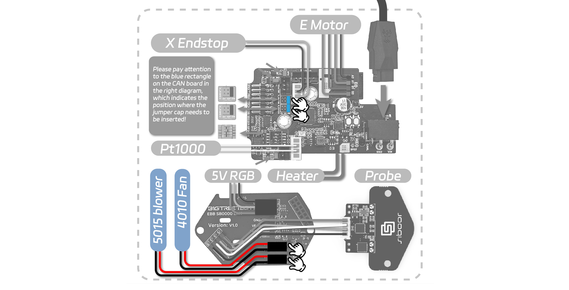* Check that the jumper cap, which identifies the small blue rectangle on the EBBcan, is inserted