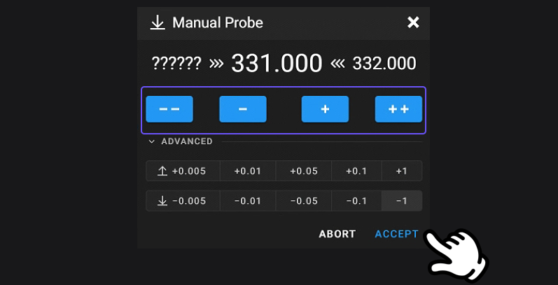 This should start a touch process that will move the toolhead into a starting position and then lower until it touches the bed, repeating itself. Its okay if at first it doesnt touch the bed at all, this is completely normal. It will eventually start touching.