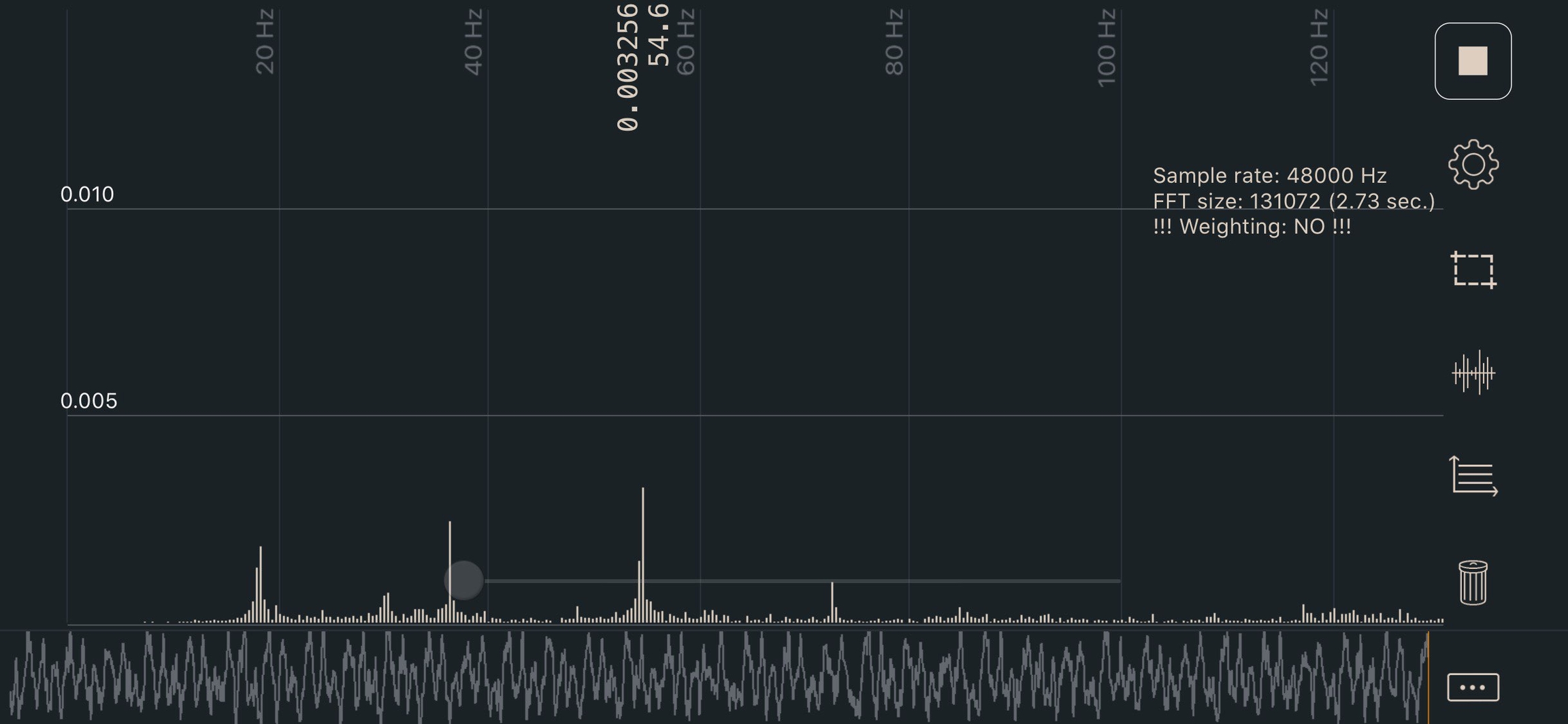 This app shows a single frequency rather than a graph. It’s more difficult to get a good reading, but easier to interpret the result.